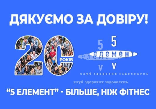 20 лет доверия, поддержки, вдохновения – это наш общий путь. Мы ценим каждого, кто выбирает клуб здоровых удовольствий «5 элемент» — и поэтому к нашему дню рождения подготовили специальное предложение на абонементы.