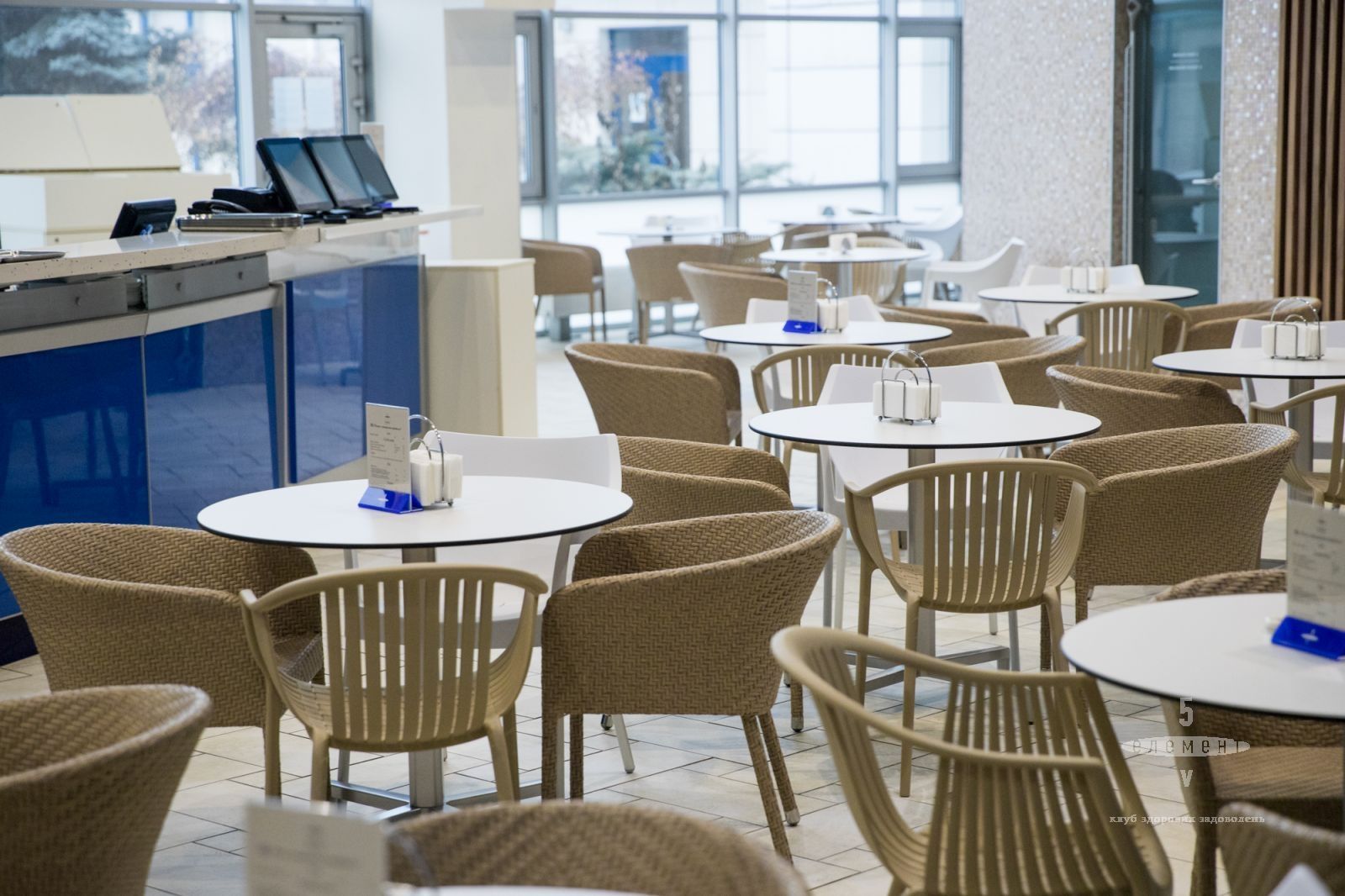 Територія Wellness клубу здорових задоволень «5 Елемент» - це своєрідний «ресторан у халатах». Тут приємно посидіти з чашкою ароматного чаю, кави, фрешу або соку між тренуванням і масажем або відвідуванням аромагроту і сауни. А якщо ви зголодніли, втамувати голод можна, замовивши їжу з меню ресторану клубу.